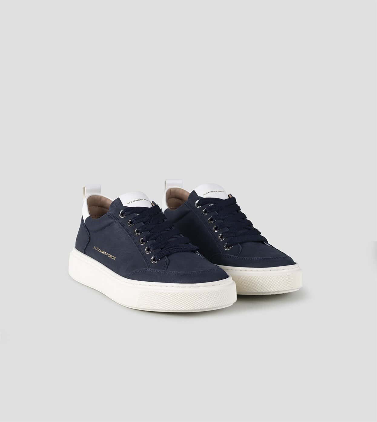 Sneakers in vitello e nabuk. Suola 3 cm. Fondo in gomma.