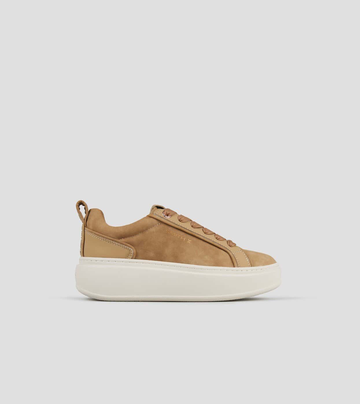 STONE è la sneaker minimal firmata Smith X. Logo sul lato. Suola 50 mm. Soletta interna 10 mm. Sneakers in suede marrone e tallone gommato.