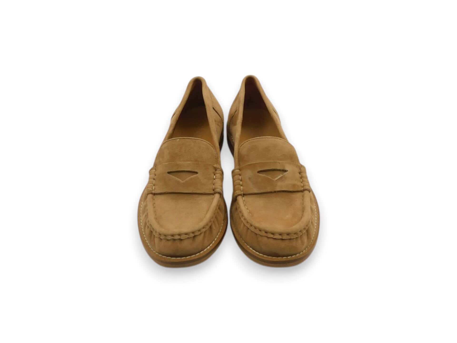 Mocassino in pelle scamosciata. Fondo in cuoio. Interno in pelle.