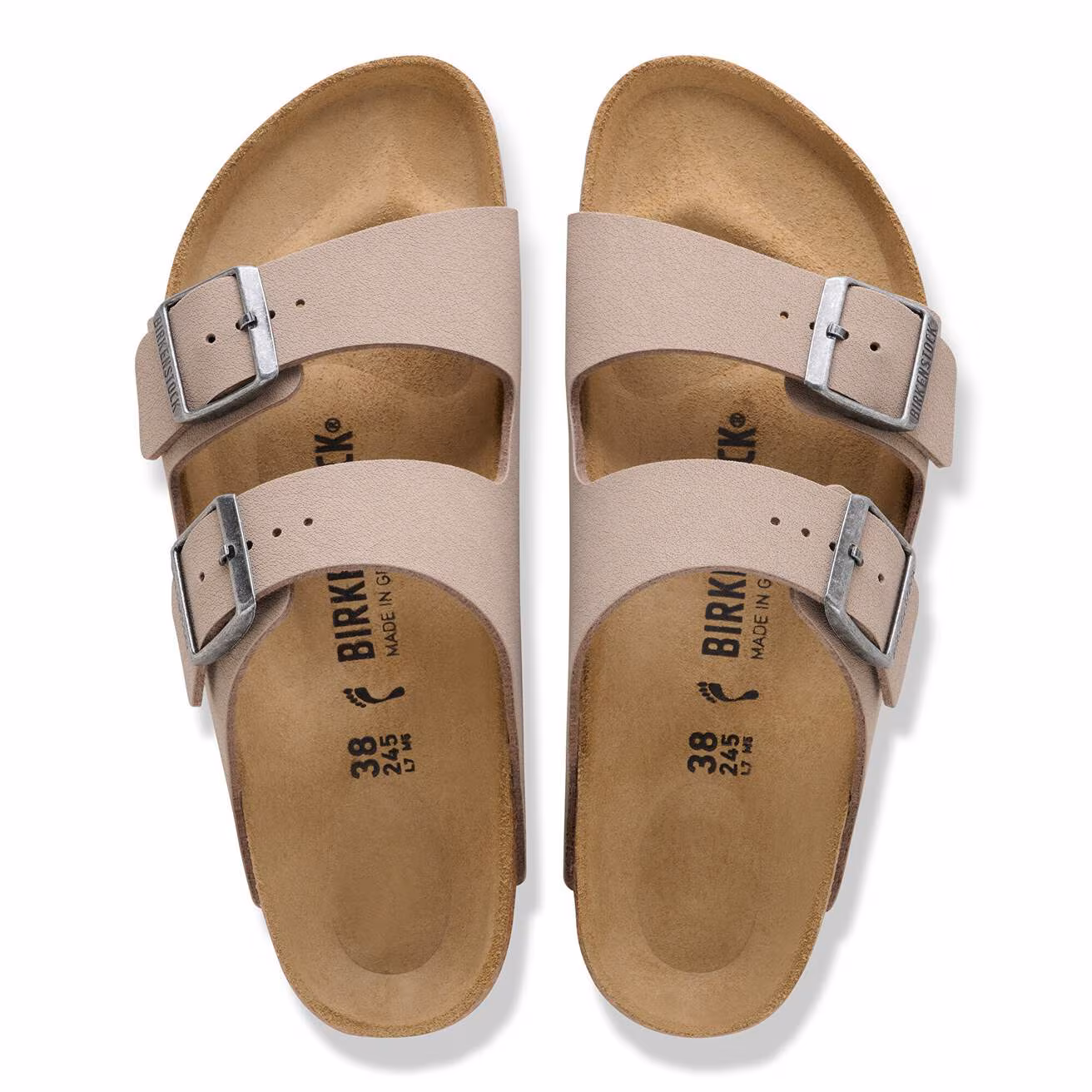 Plantare dalla forma anatomica in sughero e lattice. Tomaia: Birko-Flor®. Sottopiede: pelle scamosciata. Suola: EVA. Dettagli: cinturini con due fibbie di metallo regolabili individualmente. “Made in Germany”. Calzata stretta.