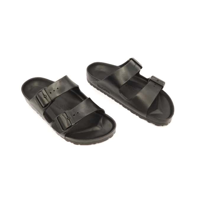 Ciabatta in EVA nero. Il materiale plastico EVA non ha odore o sostanze inquinanti, è molto leggero, altamente elastico, impermeabile e dermoaffine. Il plantare ha una forma anatomica. Calzata stretta.