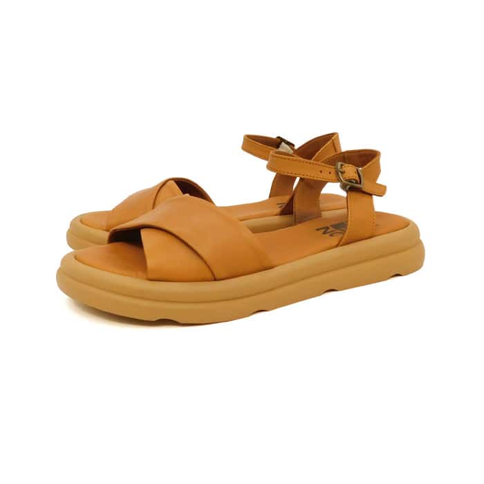 Sandalo in pelle con fascia incrociata e cinturino alla caviglia. Fondo in gomma.