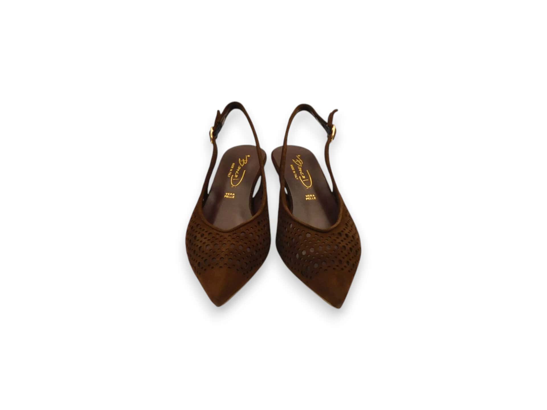 Chanel in camoscio traforato lavorato al laser. Tacco 3 cm. Fondo in cuoio.
