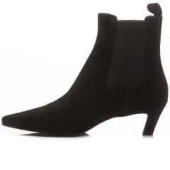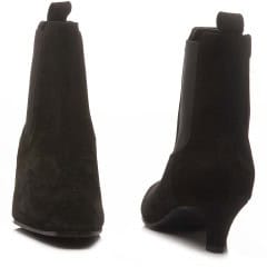 Tronchetto in camoscio. Tacco 5 cm. Elastici laterali. Fondo in cuoio e gomma antiscivolo.