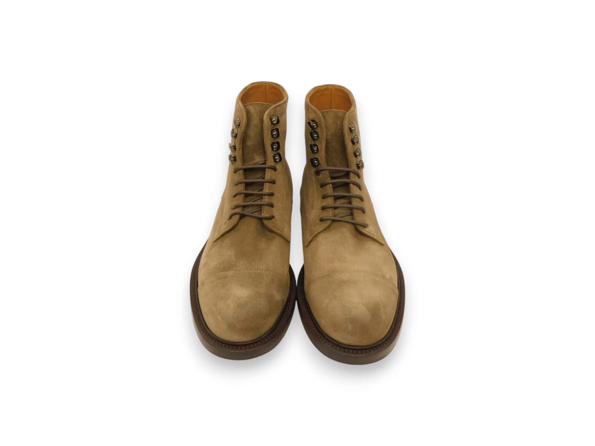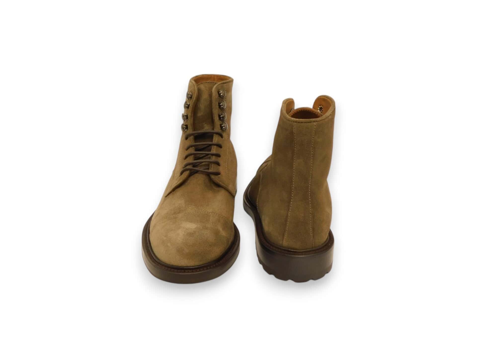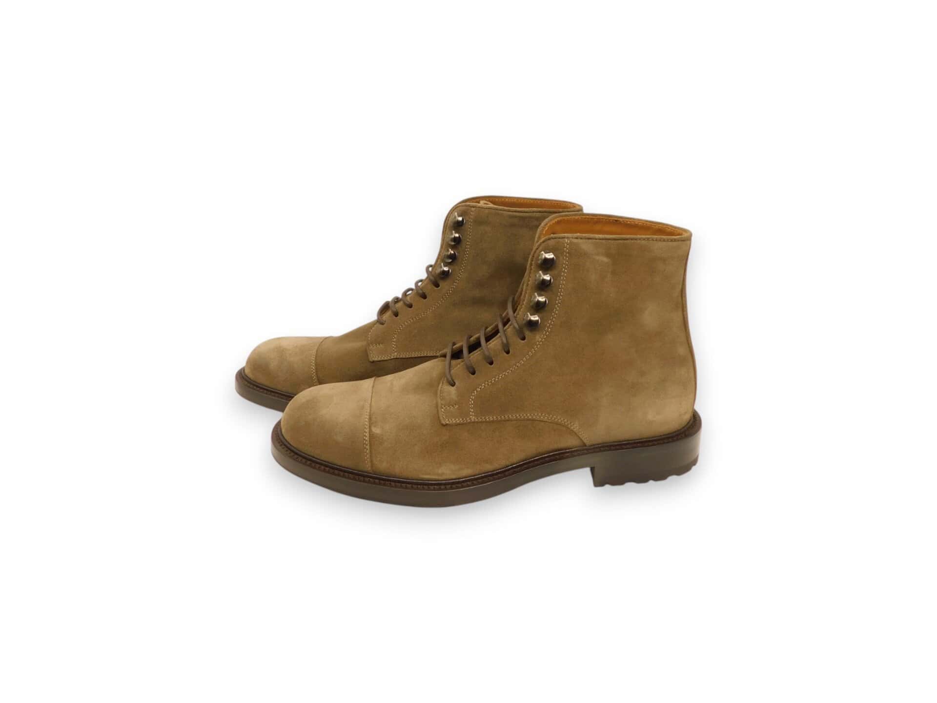 Anfibio in camoscio. Allacciatura con lacci e zip interna. Fondo in gomma. Interno in pelle.