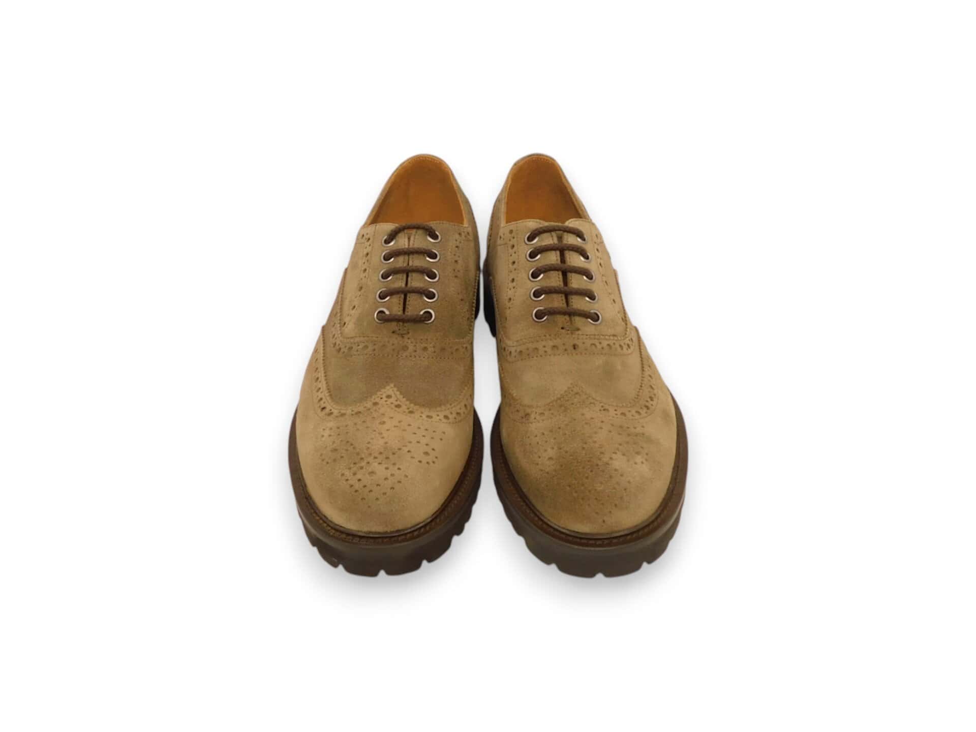 Scarpa bassa in pelle scamosciata ricamata. Fondo in gomma con carrarmato. Interno in pelle.