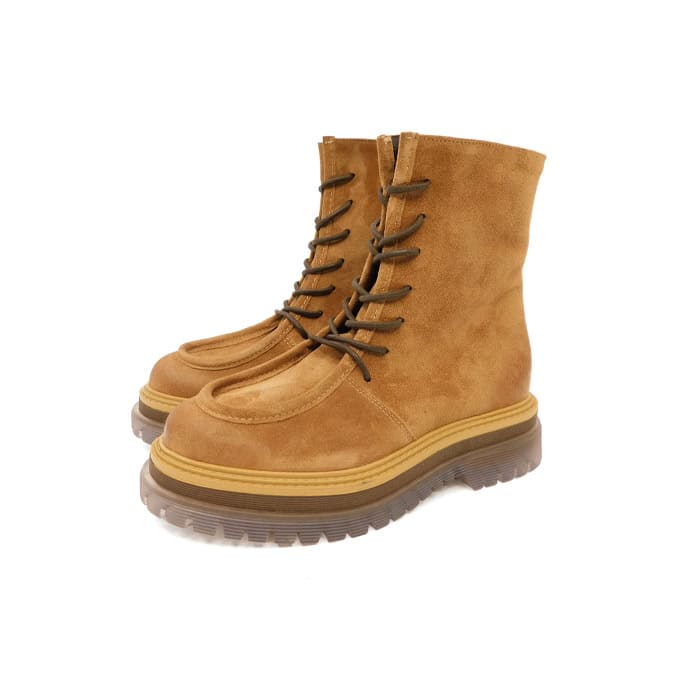Anfibio in camoscio con cucitura sulla punta. Interno in pelle. Zip laterale. Fondo in gomma.