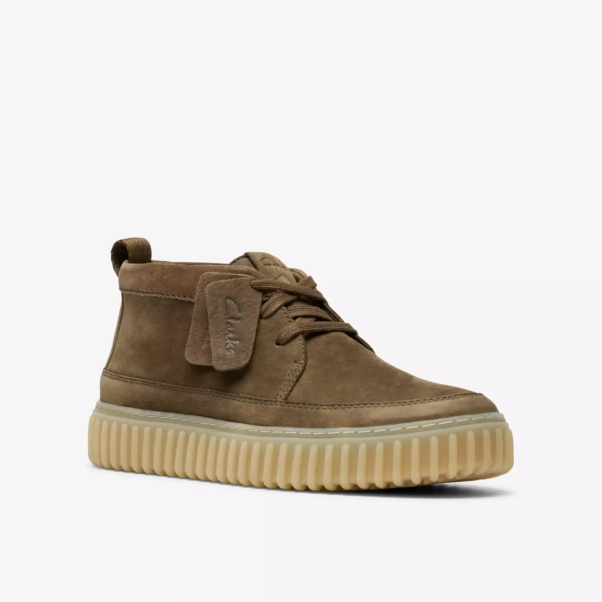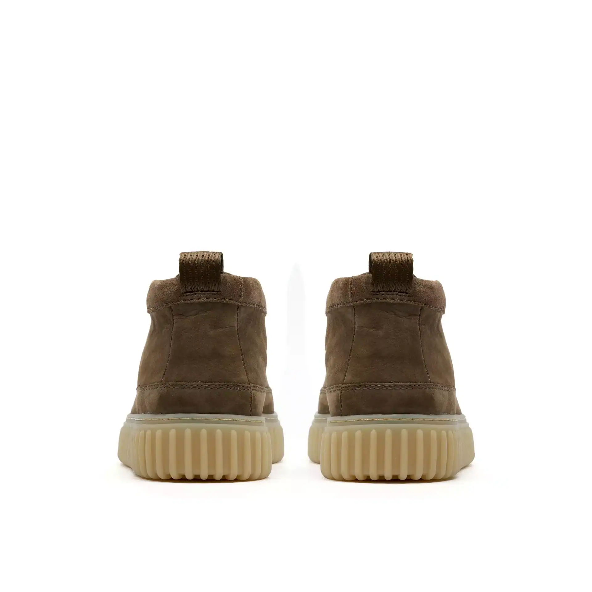 Tomaia in pregiato nabuk kaki. Lacci regolabili per una calzata sicura. Plantare Contour Cushion in pelle, sagomato e rimovibile, che supporta ogni passo. Suola in TR (gomma termoplastica) durevole e scanalata con riempitivo in EVA per una trazione leggera.