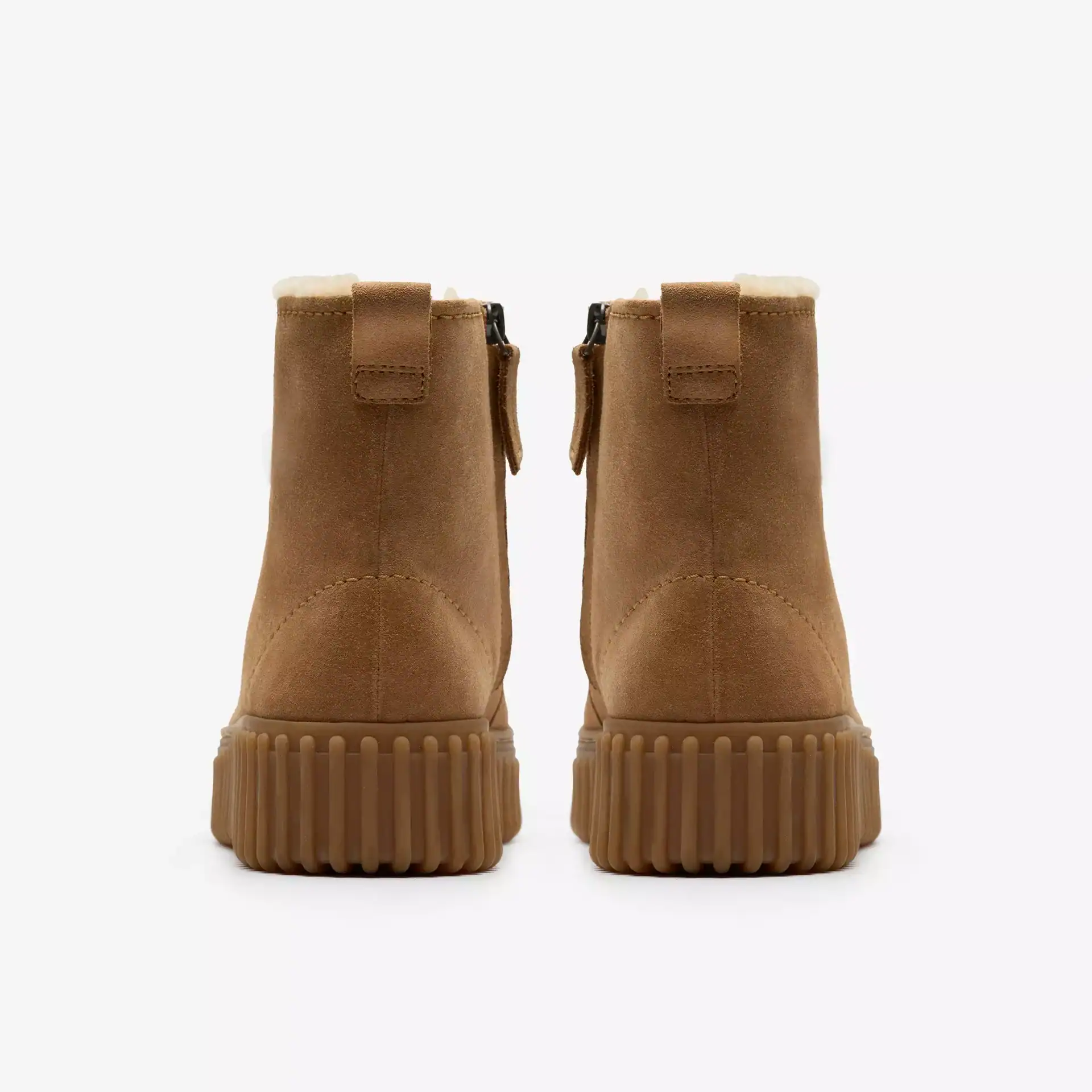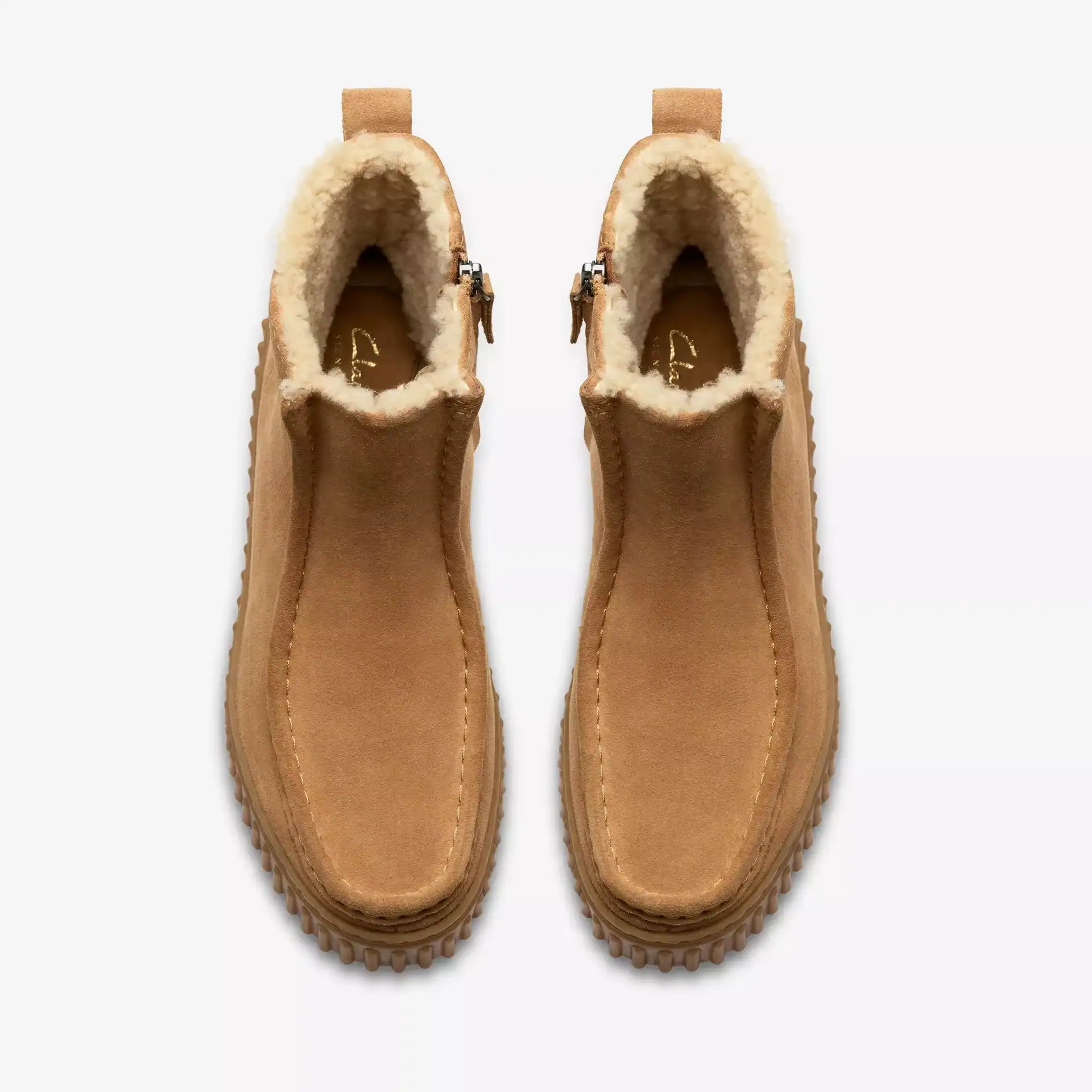 Tomaia in pregiata pelle scamosciata color cuoio chiaro. Il plantare sagomato Contour Cushion offre un supporto impareggiabile sotto il piede. La chiusura con cerniera interna e lacci combinati rende facile indossarle e toglierle e garantisce una vestibilità sicura e personalizzata. La fodera in morbida pelliccia sintetica aggiunge calore e morbidezza extra. Suola durevole in TR (gomma termoplastica) con riempitivo in EVA offre trazione leggera. Altezza tacco: 40mm.