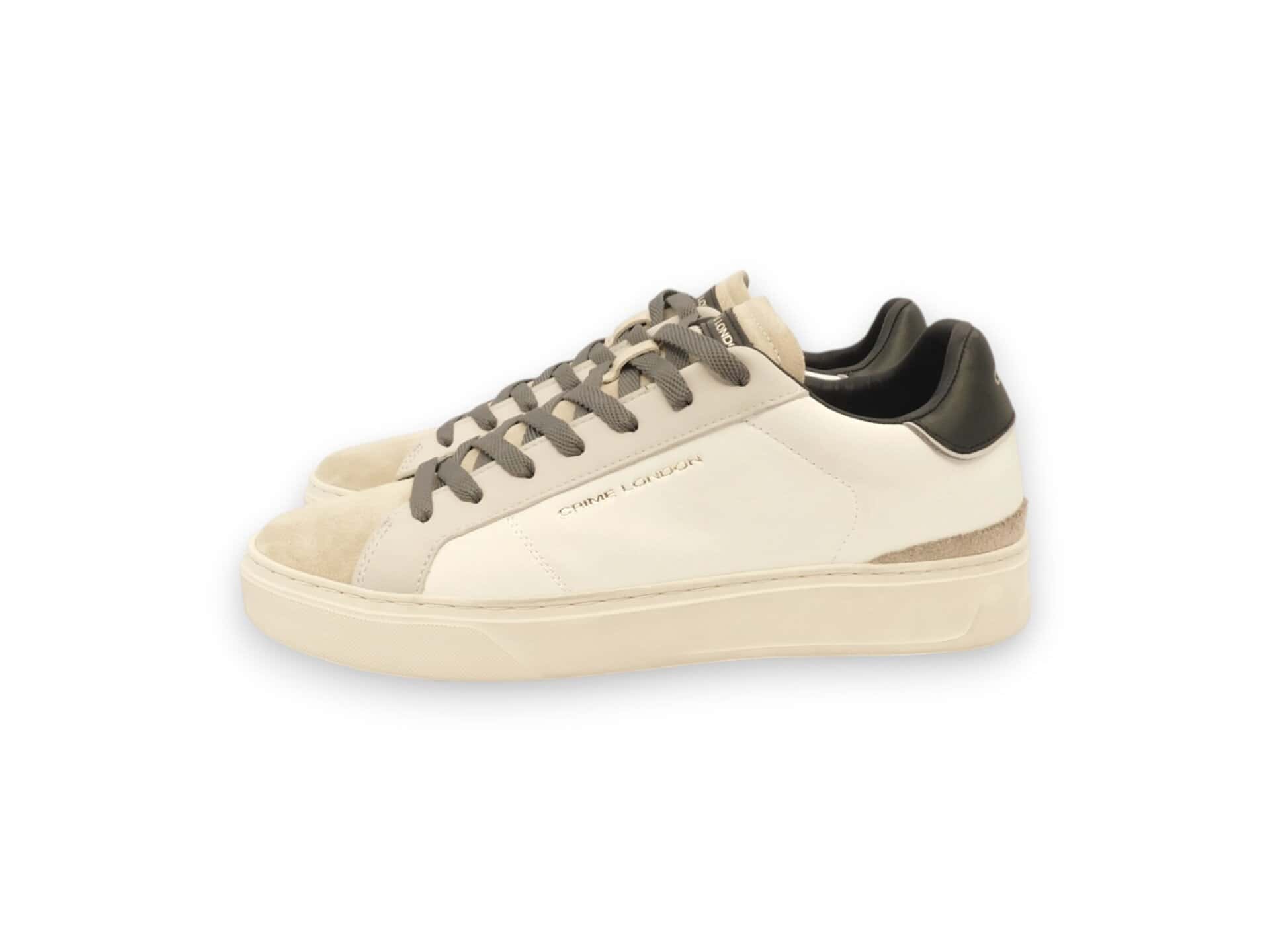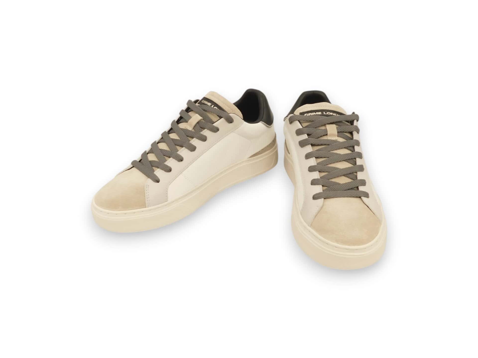 Sneaker bassa con lacci a contrasto. Suola in gomma. Interno in pelle e tessuto. Talloncino a contrasto, nero.
