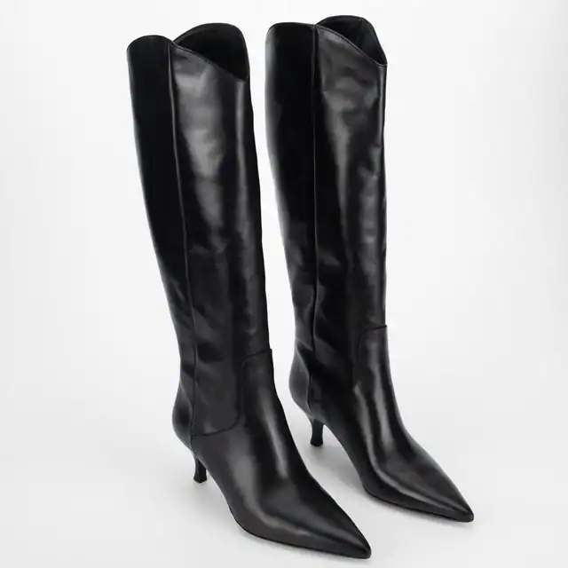Stivale Lucy vitello. Tacco 3 cm. Fondo in cuoio e gomma liscia. Interno in vitello.