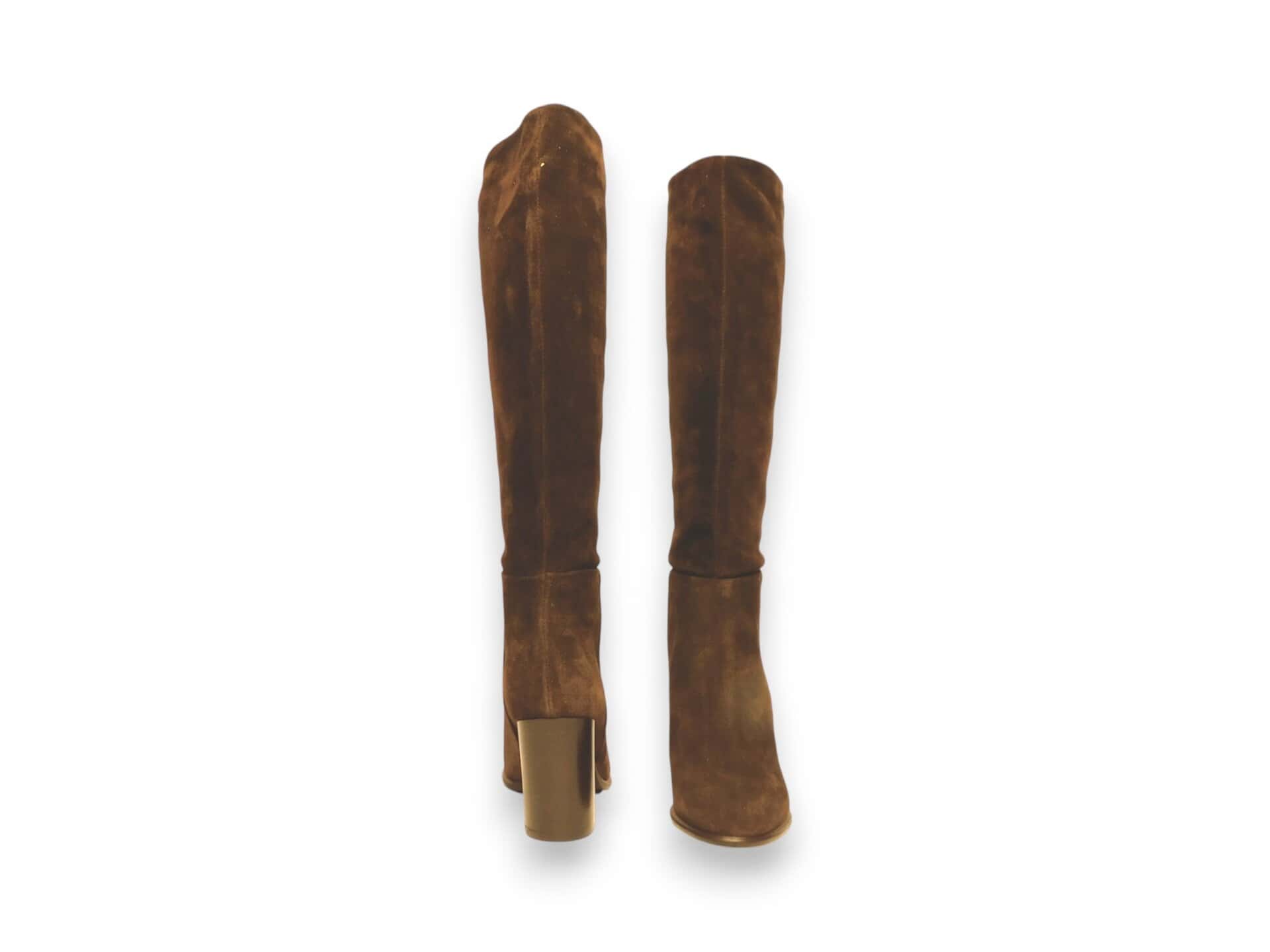 Stivale a tubo in camoscio. Tacco 7 cm. Fondo in cuoio e gomma antiscivolo.