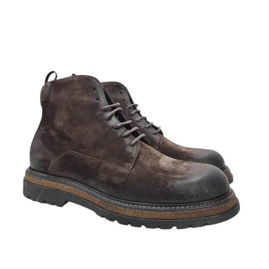 Anfibio in pelle ingrassata. Fondo carrarmato in gomma. Allacciatura e zip interna. Interno in pelle.