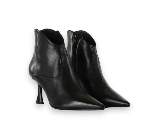 Stivaletti in pelle con tacco a rocchetto. Altezza del tacco (cm): 7,5. Tomaia in pelle. Chiusura con zip. laterale. Interno e soletta in pelle. Suola in cuoio. Suola in gomma. Tacco a rocchetto. Modello a punta.