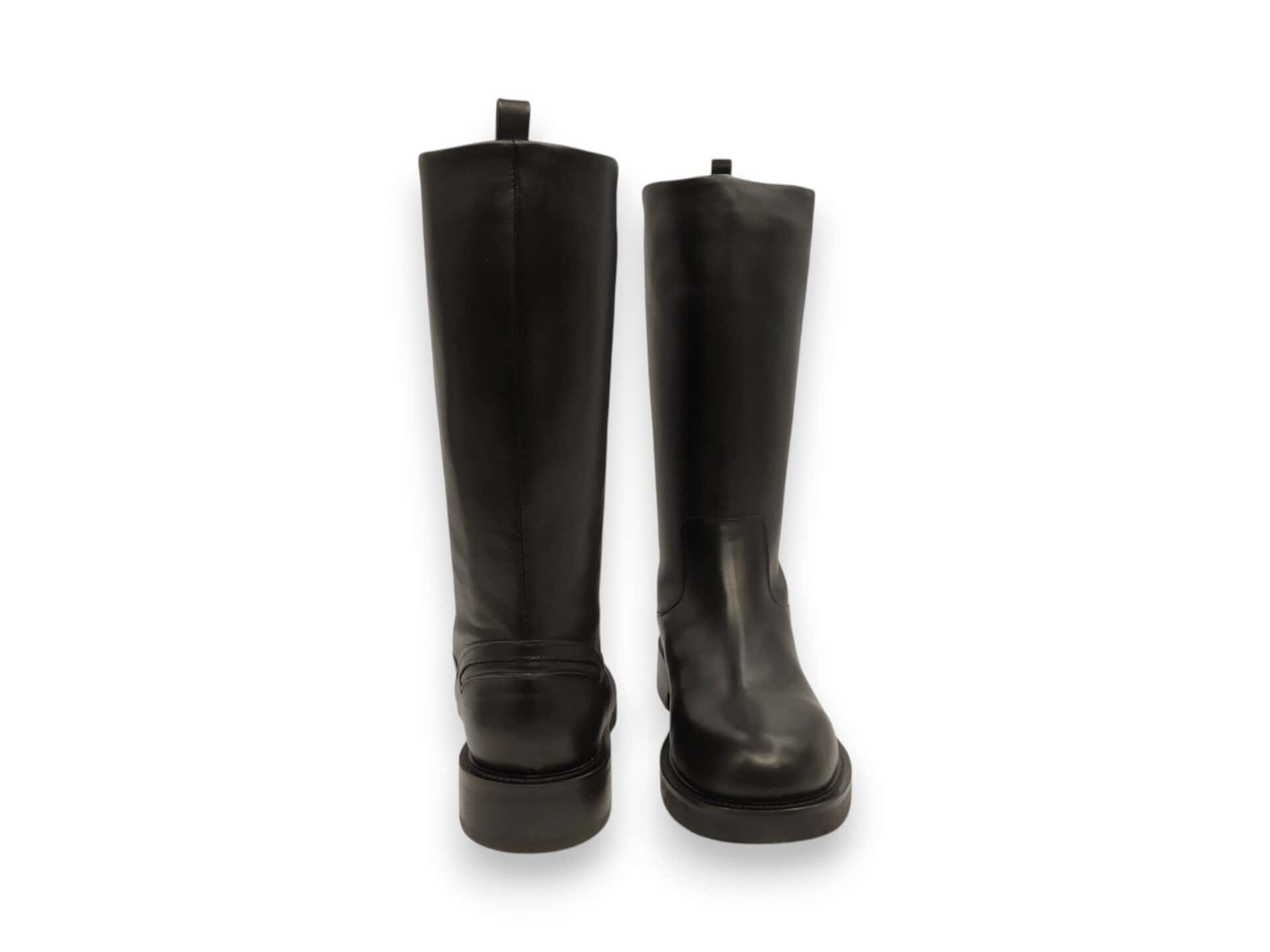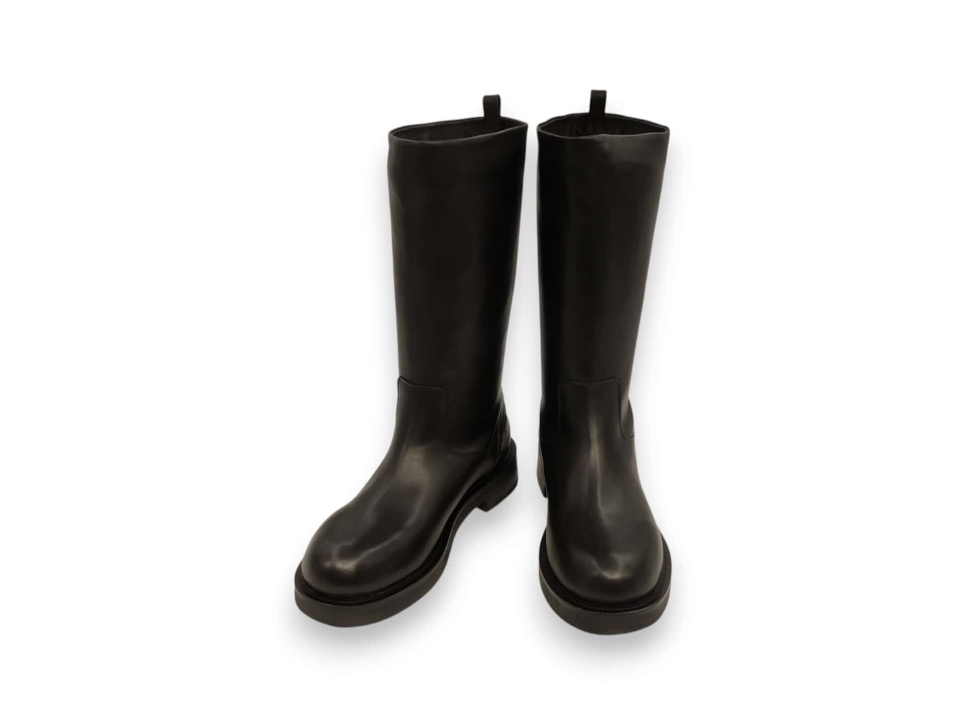 Tronchetto alto a tubo. Fondo in gomma. Interno in pelle.
