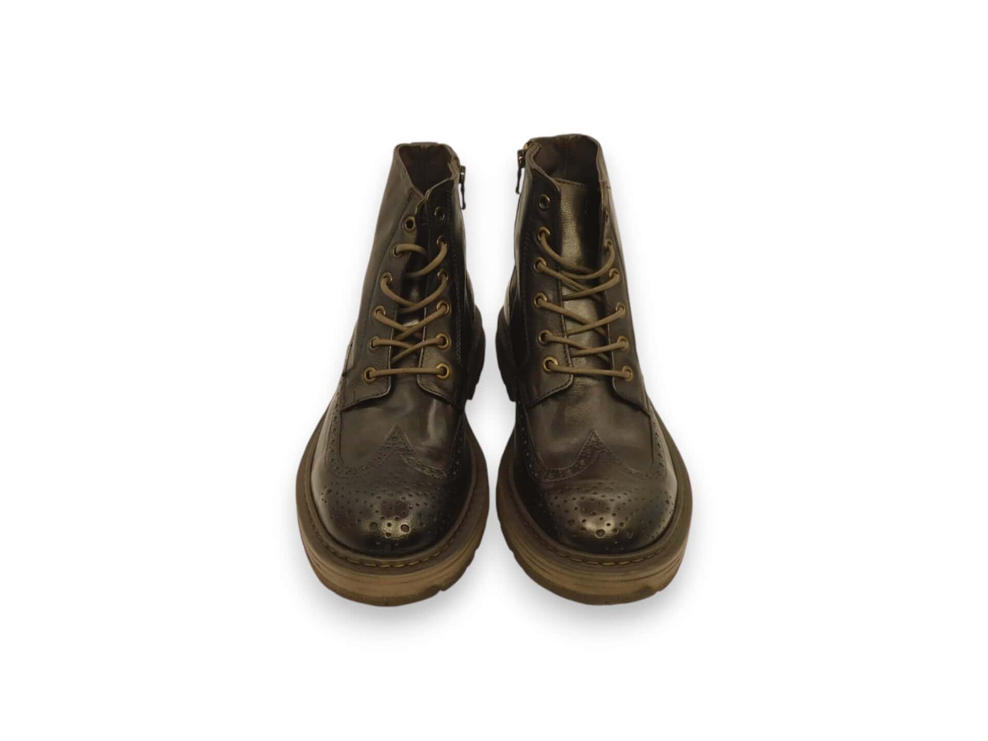 Anfibio ricamato in pelle. Ricamato. Fondo in gomma carrarmato. Interno in pelle.