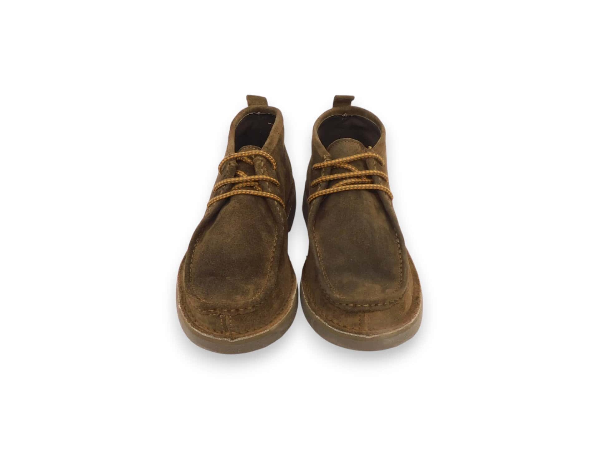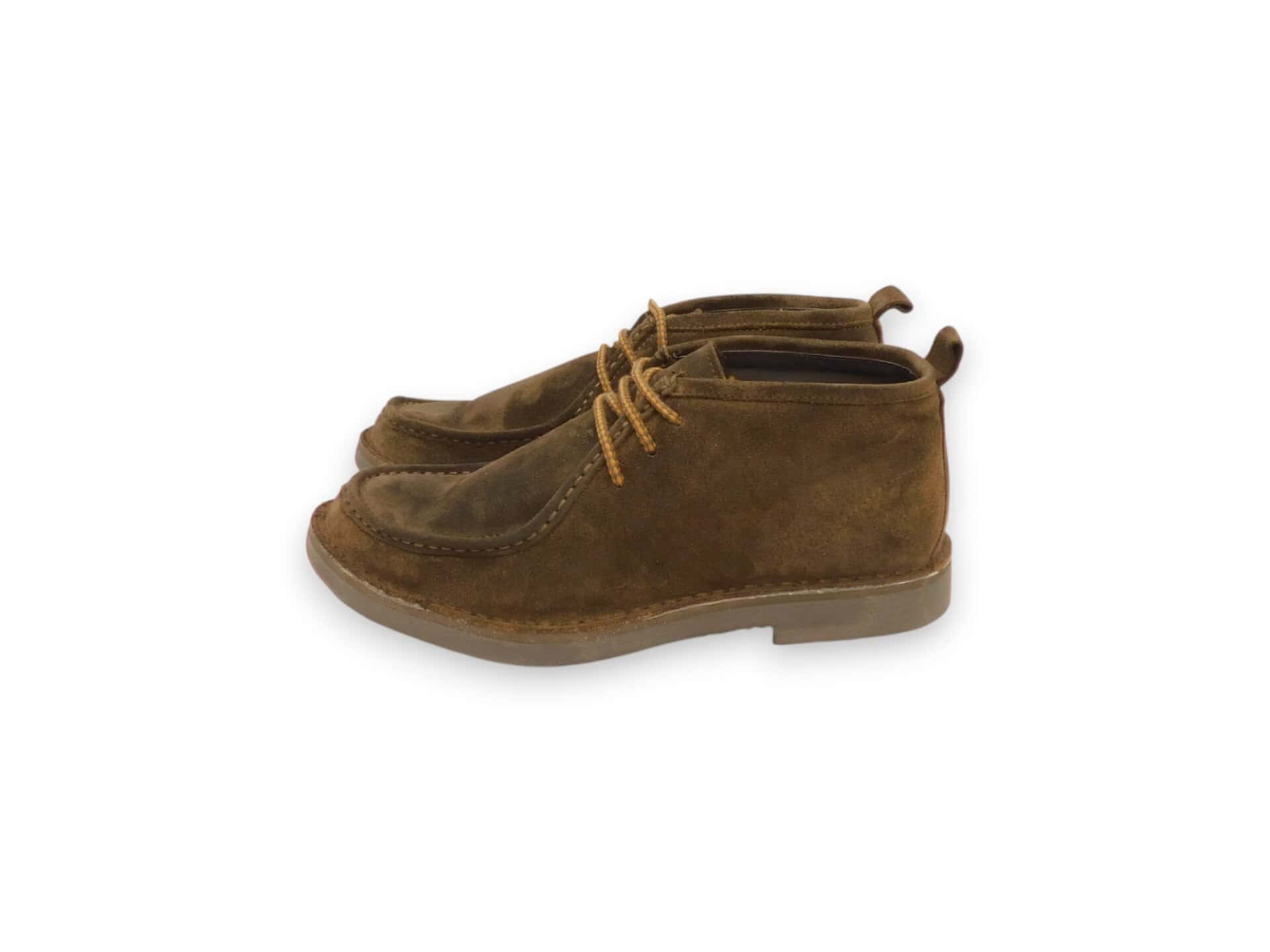 Scarpa bassa con vaschetta in camoscio e fondo in para. Cuciture a contrasto. Interno in pelle.