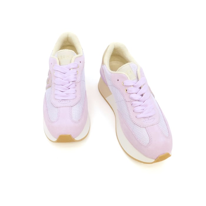 Sneaker in camoscio, mesh e pelle metallizzata. Logo laterale. Fondo platform 4 cm. Modello Dreamy 02.