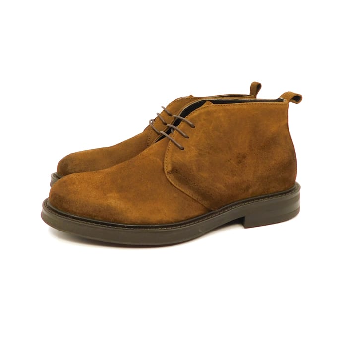 Polacco in camoscio con allacciatura a 3 fori. Interno in pelle. Fondo in gomma.