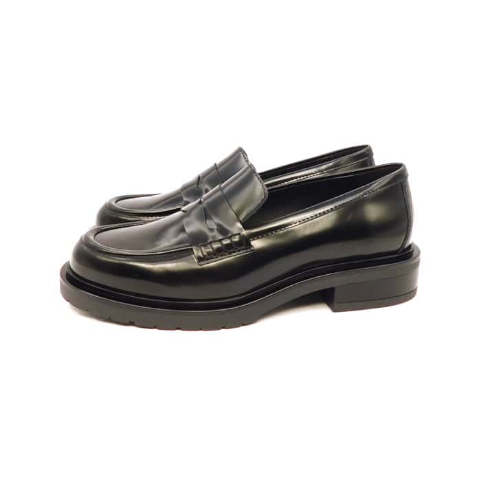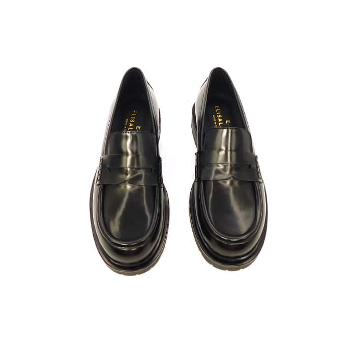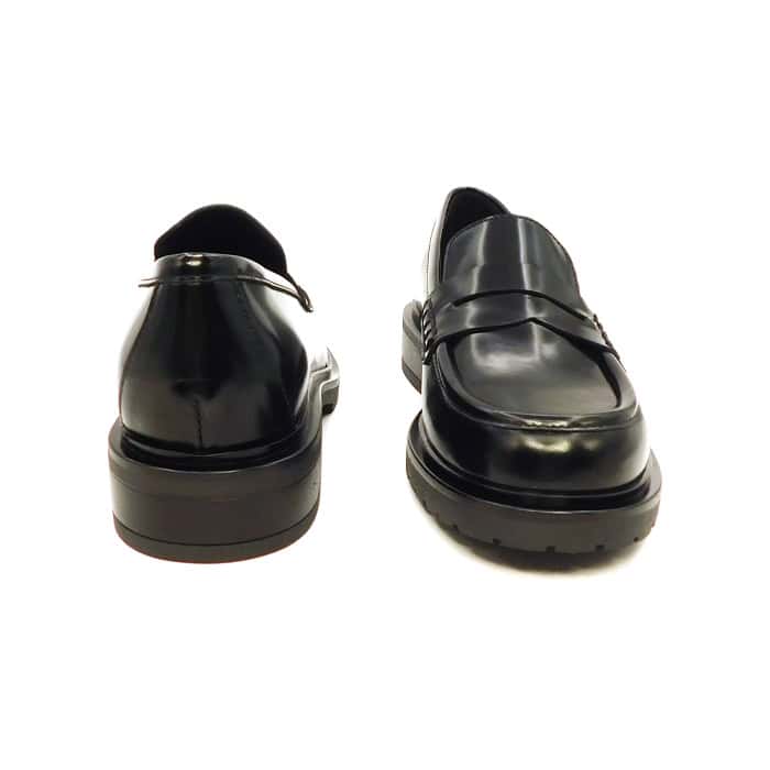 Mocassino in vitello nero spazzolato. Interno in pelle. Fondo in gomma.