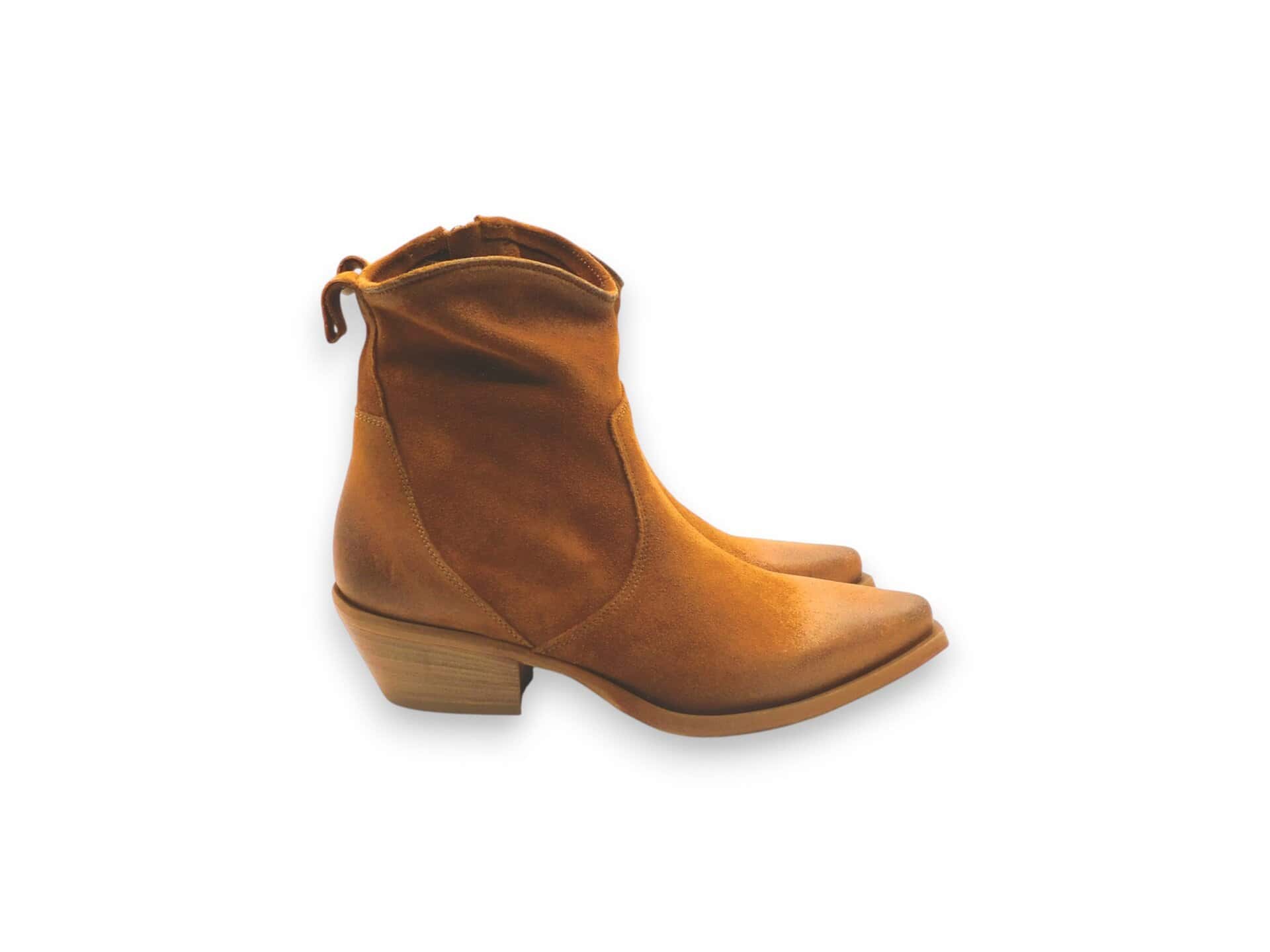 Tronchetto Texano in pelle scamosciata. Tacco 3 cm. Fondo in cuoio.