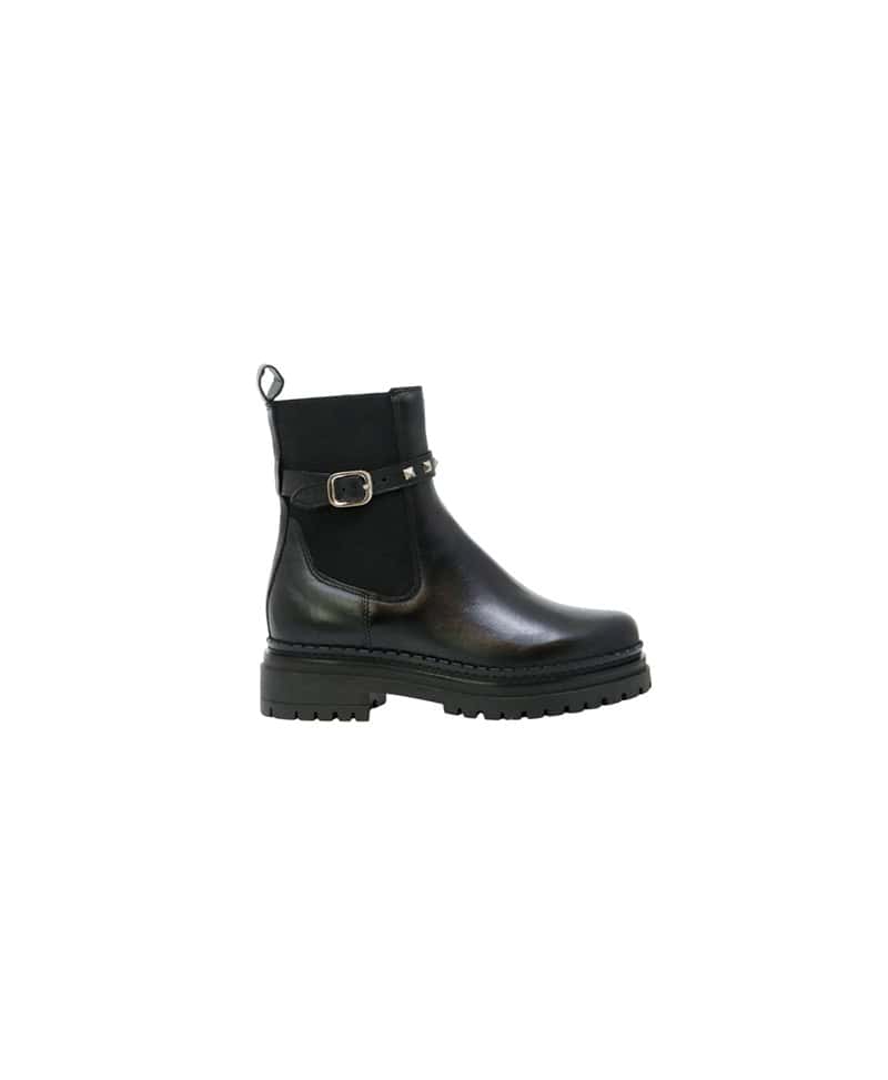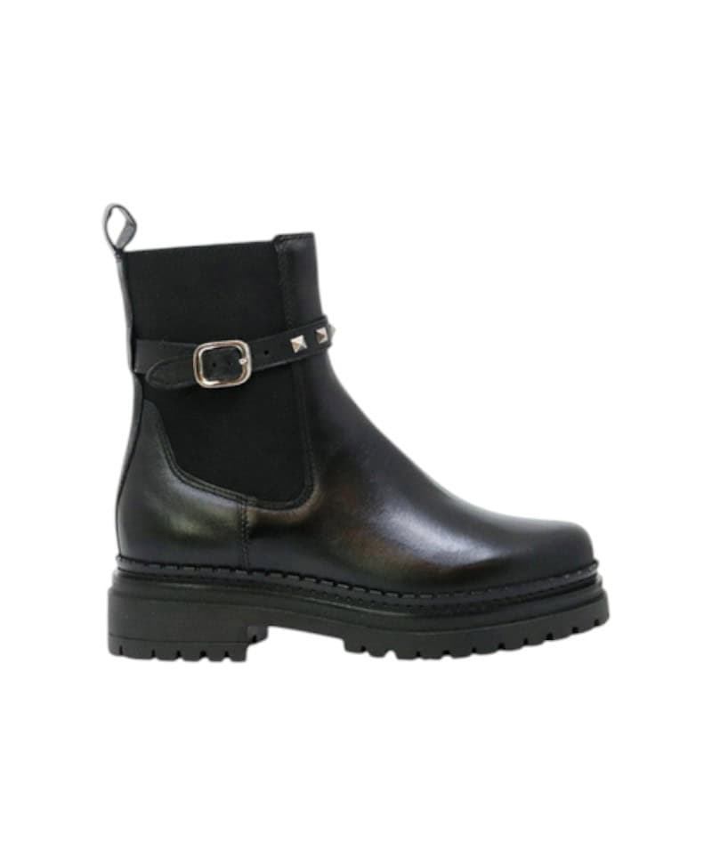 Beatles in vitello. Dettaglio cinturino sul bordo del tronchetto. Fondo in gomma carrarmato. Elastici laterali e zip interna.