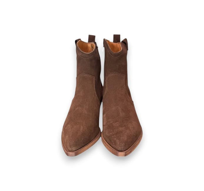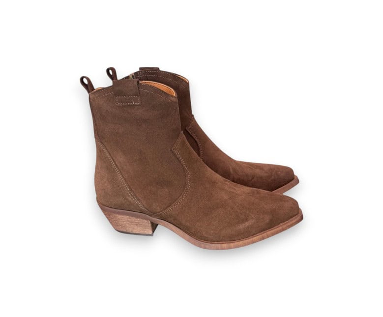 Stivaletto corto Texano in pelle scamosciata con zip. Interno in pelle. Suola in gomma. Tacco 3 cm