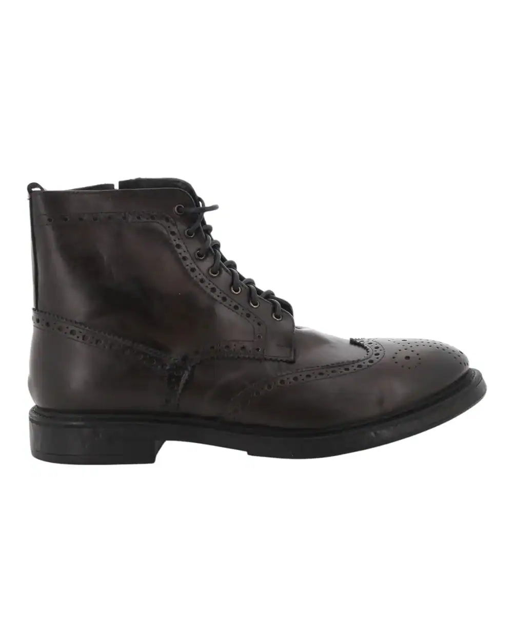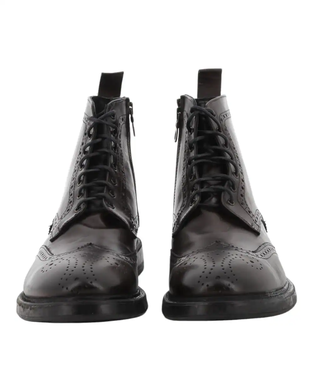 Polacco in pelle ricamata. Fondo in gomma liscia. Interno in pelle. Zip interna.