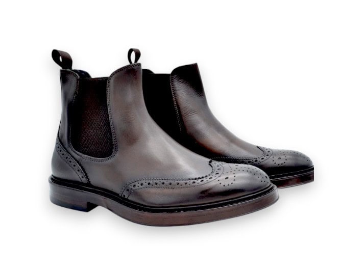 Beatles ricamato in pelle morbida. Interno in pelle. Fondo in gomma liscia.