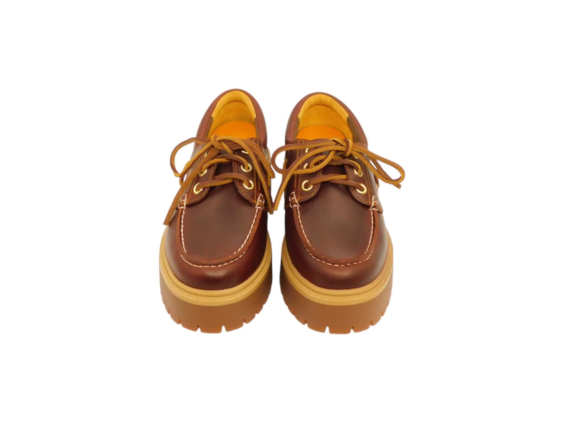 Scarpa da barca con plateau. Tomaia in pelle Premium Leather di Timberland. Pratico sistema di allacciatura a 360° con lacci in cuoio. Fodera in tessuto ReBOTL™ contenente il 50% di plastica PET riciclata. Soletta in memory foam OrthoLite® Impressions. Intersuola in poliuretano. Rinforzo in acciaio per un supporto ottimale dell’arco plantare. Il 10% della gomma che compone la suola proviene da aziende che utilizzano pratiche di agricoltura rigenerativa.